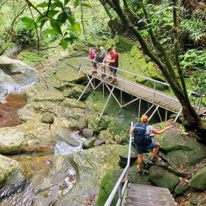 Tiếp tục hành trình, quý khách dạo bước trong rừng nguyên sinh trên những con đường mòn, dừng chân và thỏa sức bơi lội thư giãn tại Ngũ Hồ với dòng nước tự nhiên mát lạnh và trong lành, bên trên là tiếng chim rừng hót, thỉnh thoảng có một số động vật xuất hiện…