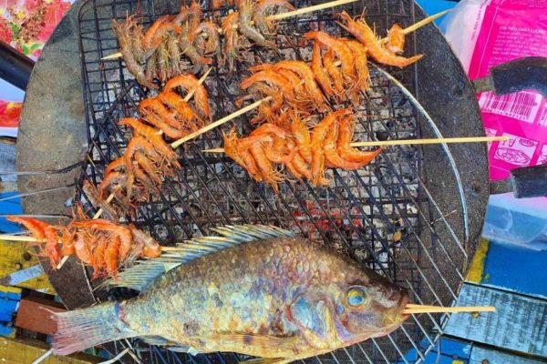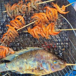 Quý khách thưởng thức tiệc nướng BBQ mini bằng những những chiến lợi phẩm mà mình đánh bắt được.